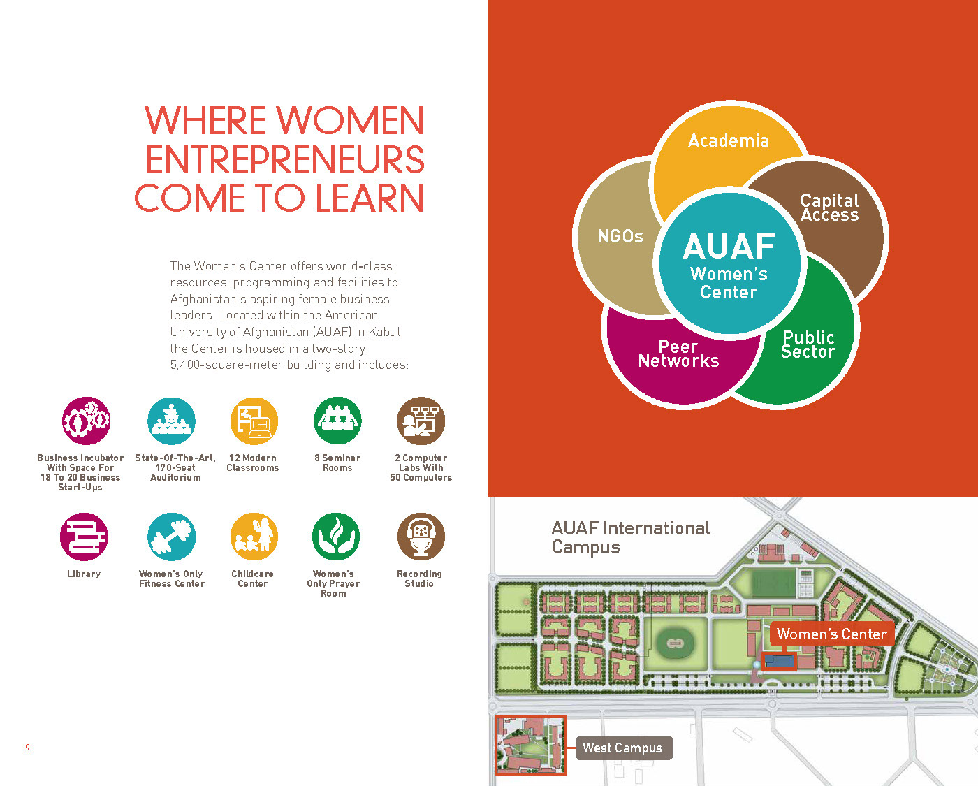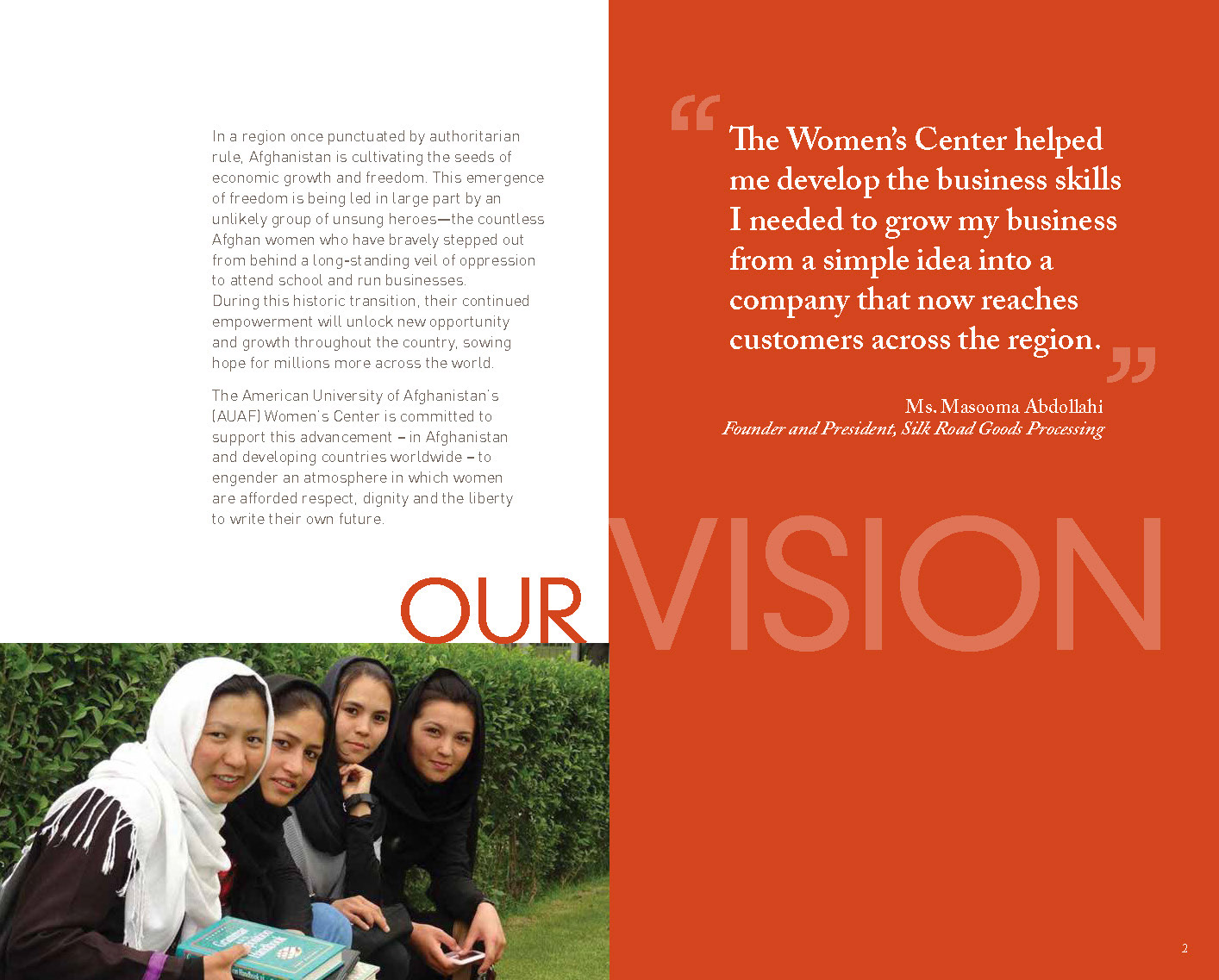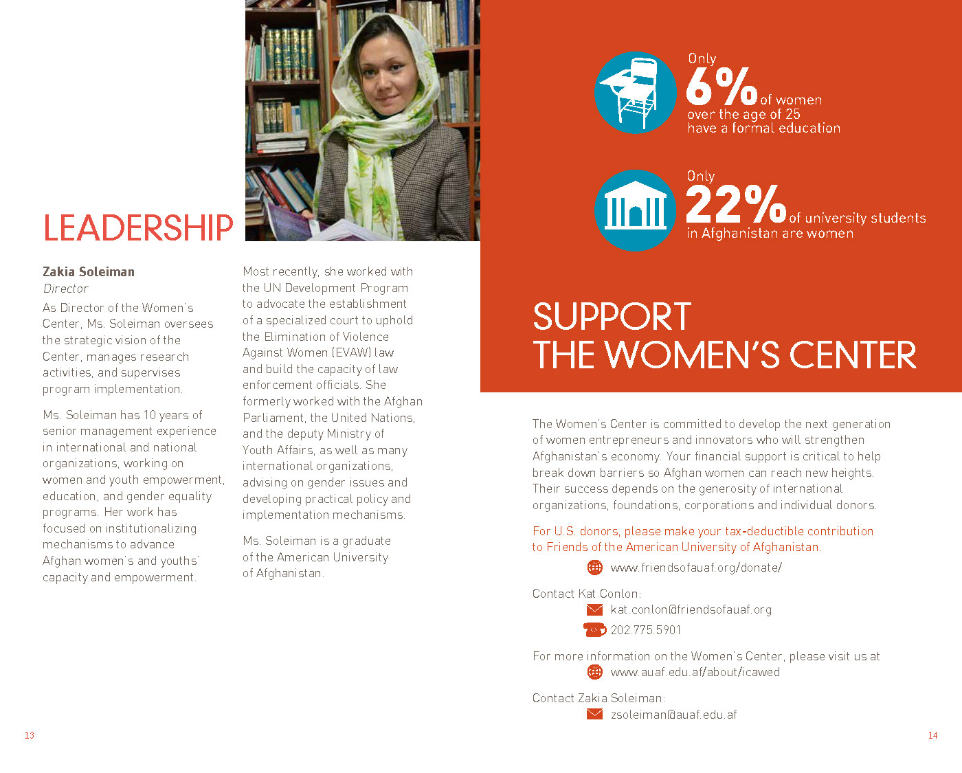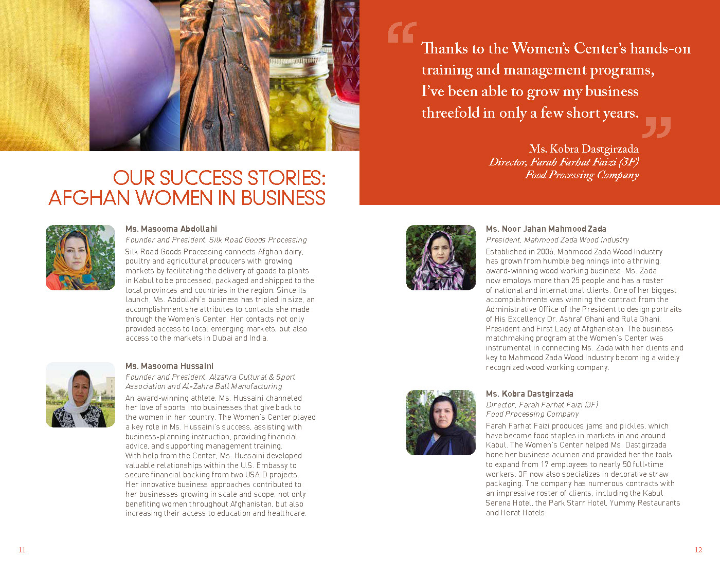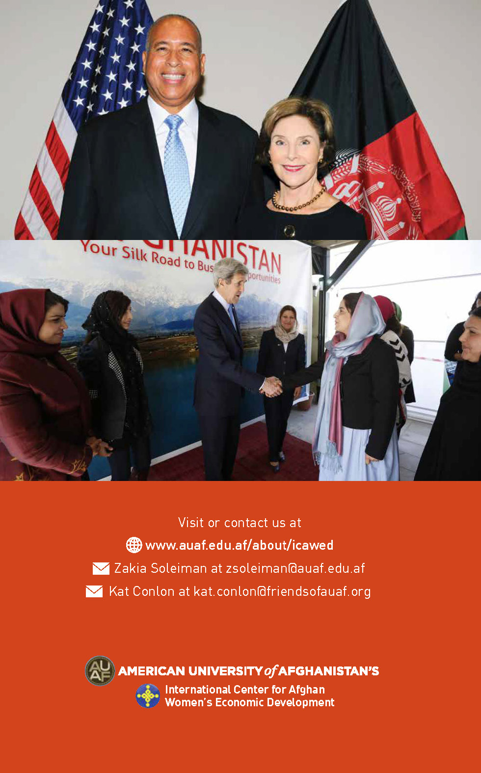 This brochure, used for fundraising and promotion for the International Center for Afghan Women's Economic Development, features bold colors and a timeless design.